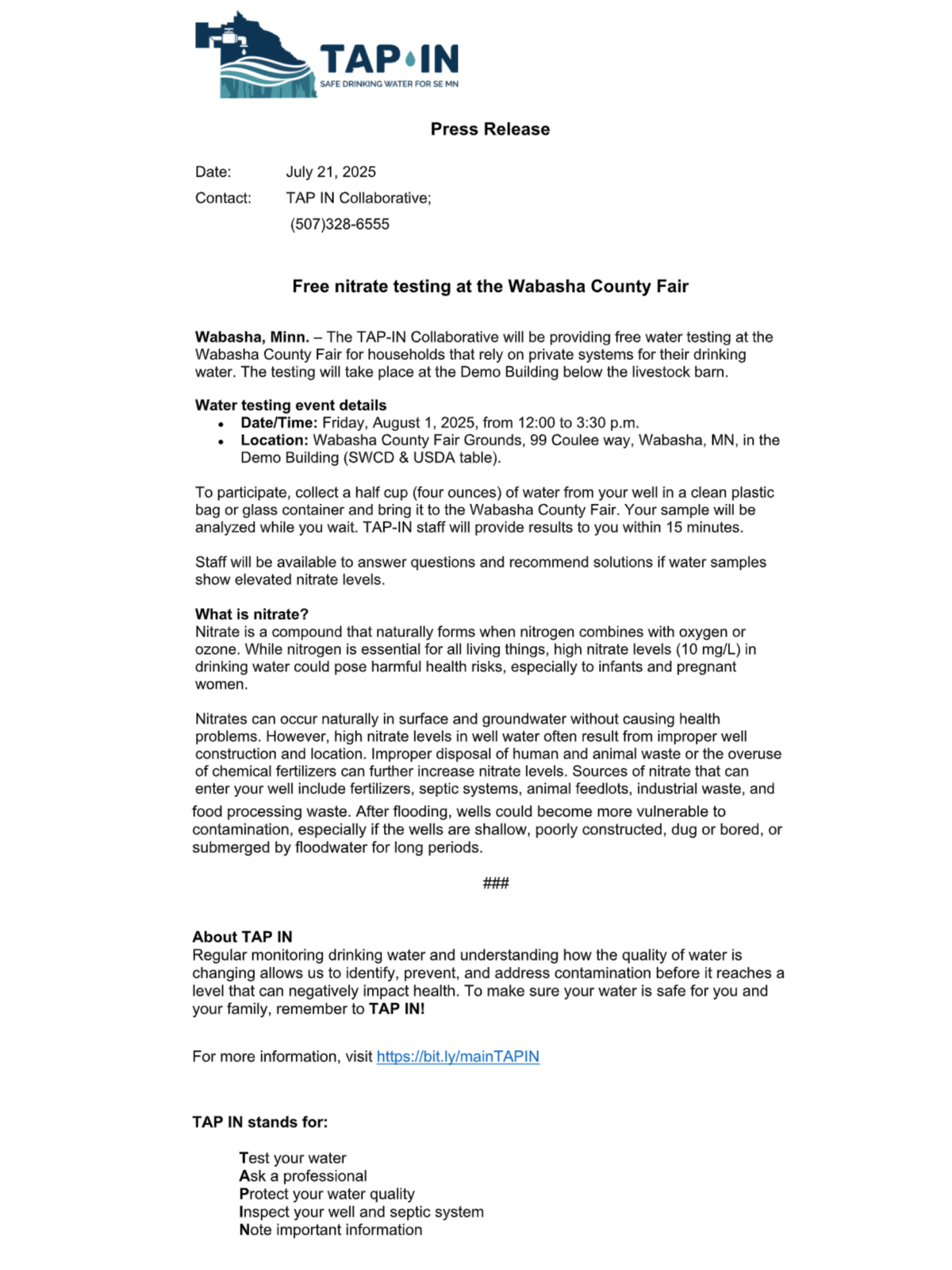 Free Nitrate Testing at The Wabasha County Fair